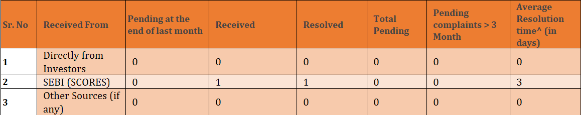 Formats for investors complaints data to be disclosed monthly by SEBI RIAs on their website/mobile application:
