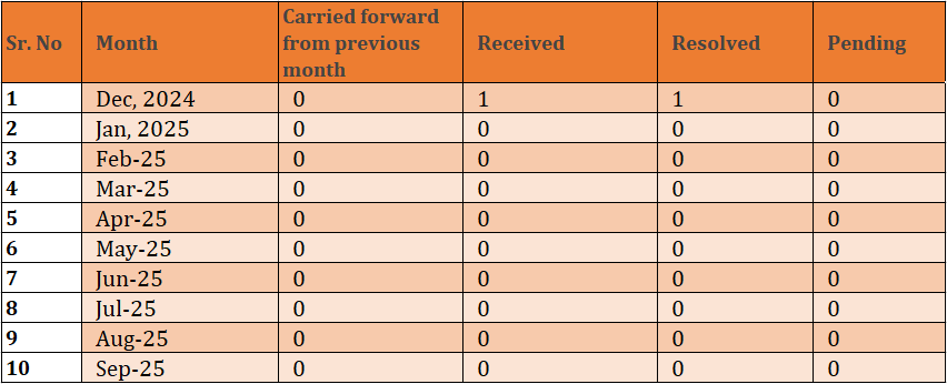 Inclusive of complaints of previous months resolved in the current month. #Inclusive of complaints pending as on the last day of the month.